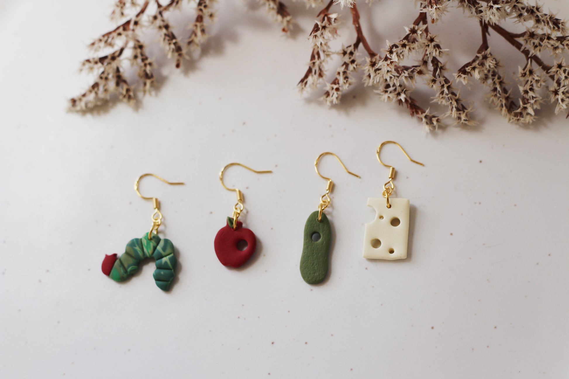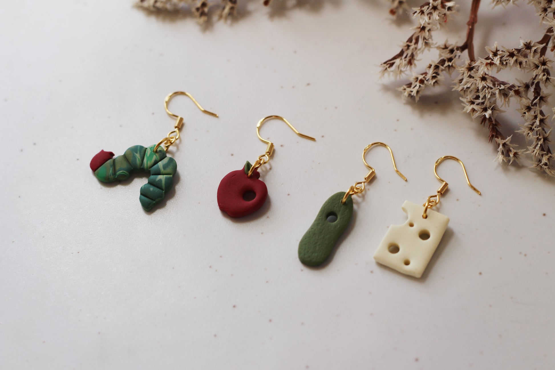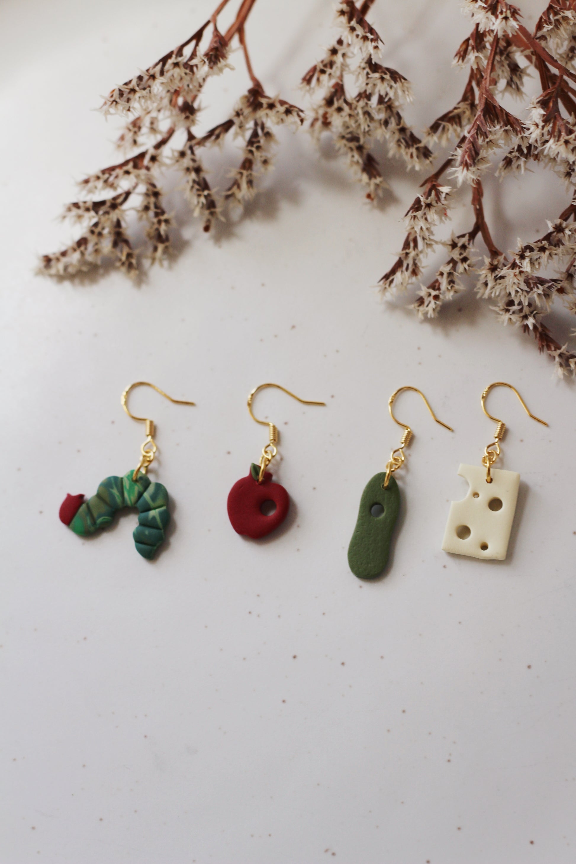 Polymer clay earrings made with 18k gold plated hardware. Lightweight, hypoallergenic, and nickel free.