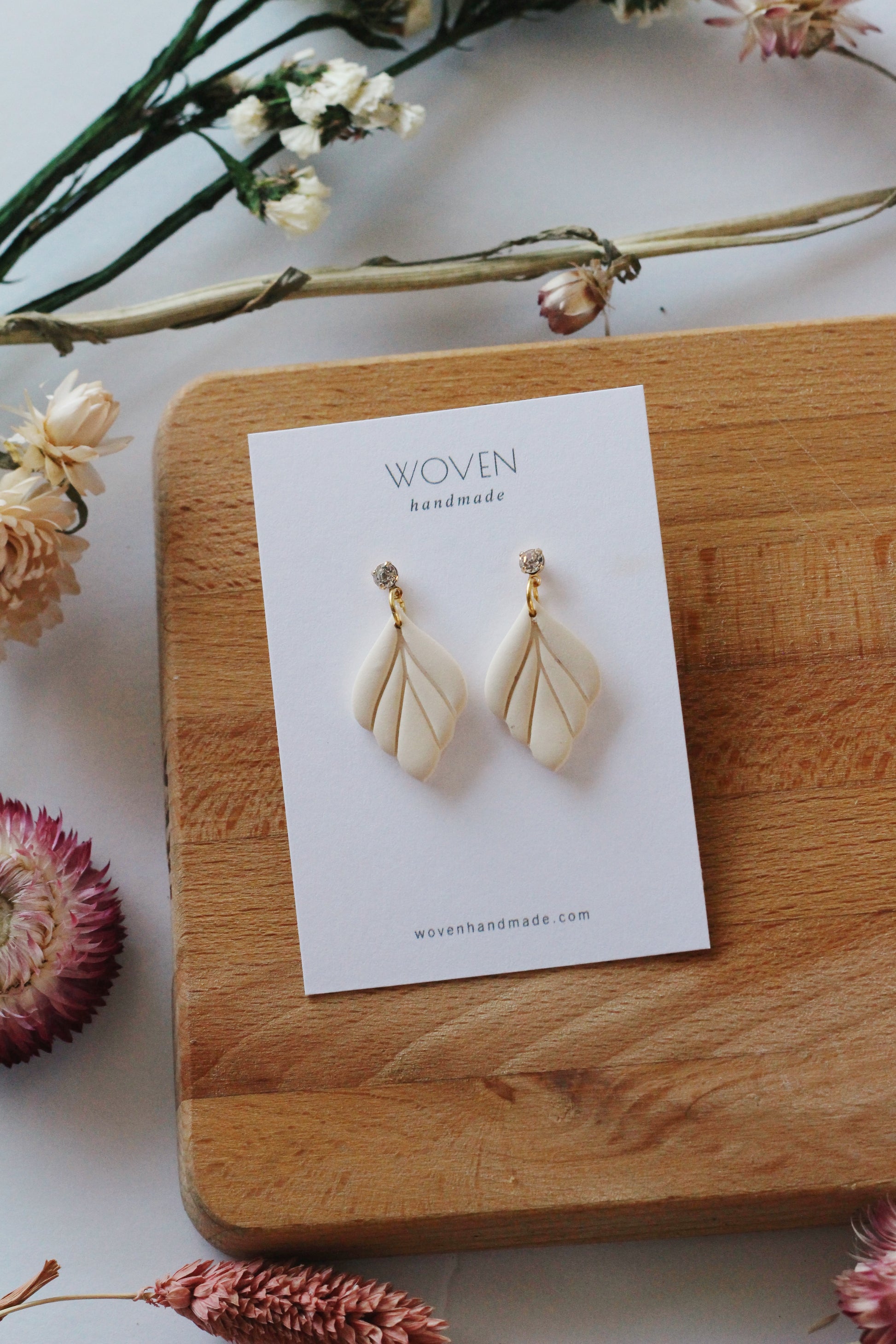 Polymer clay earrings with 18k gold plated hardware and cubic zirconia top. Hypoallergenic and nickel free.
