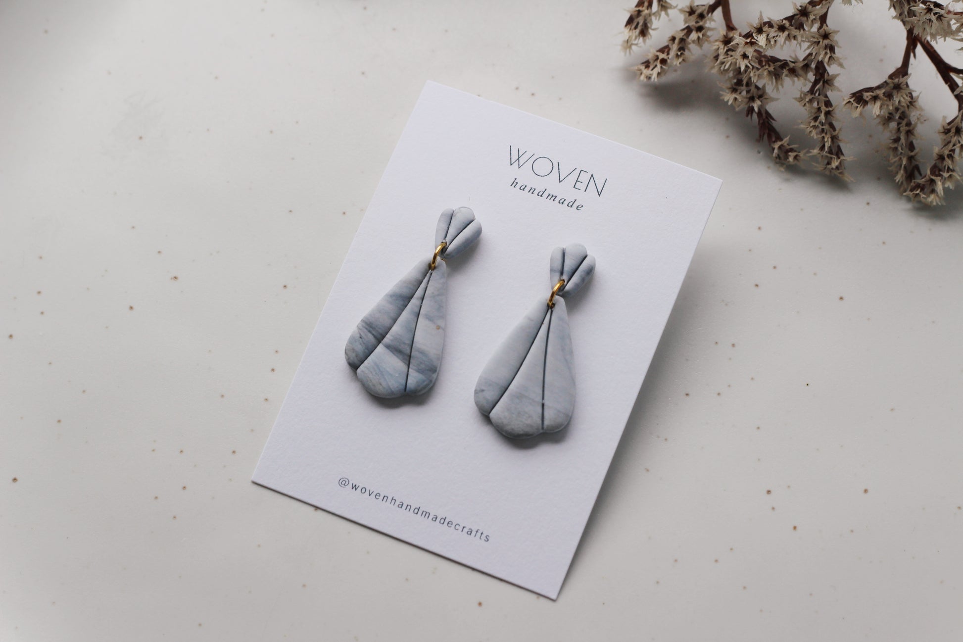 Polymer clay earrings with stainless steel hardware. Hypoallergenic and nickel free. Lightweight and measure 1.6" from the top of earring post