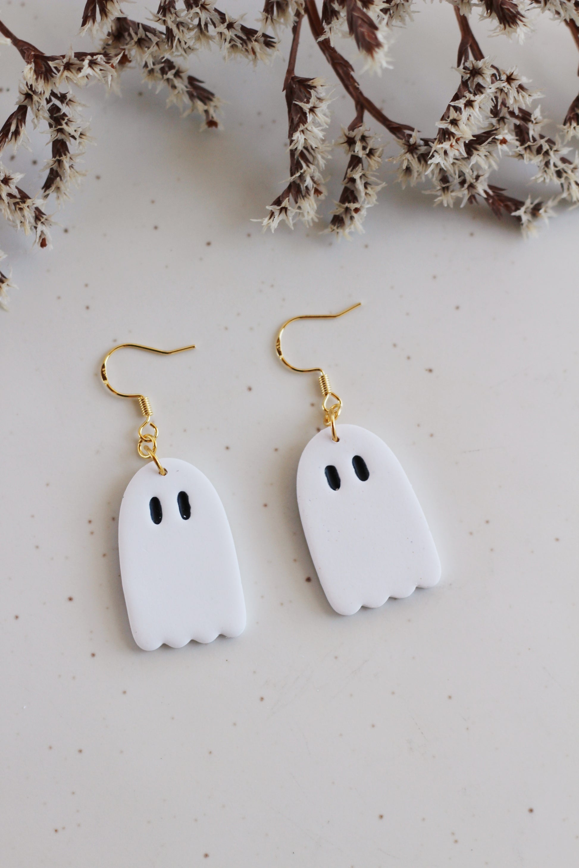 Polymer clay earrings made with 18k gold plated hardware. Lightweight, hypoallergenic, and nickel free. Ghosts have a slight sparkle to them!