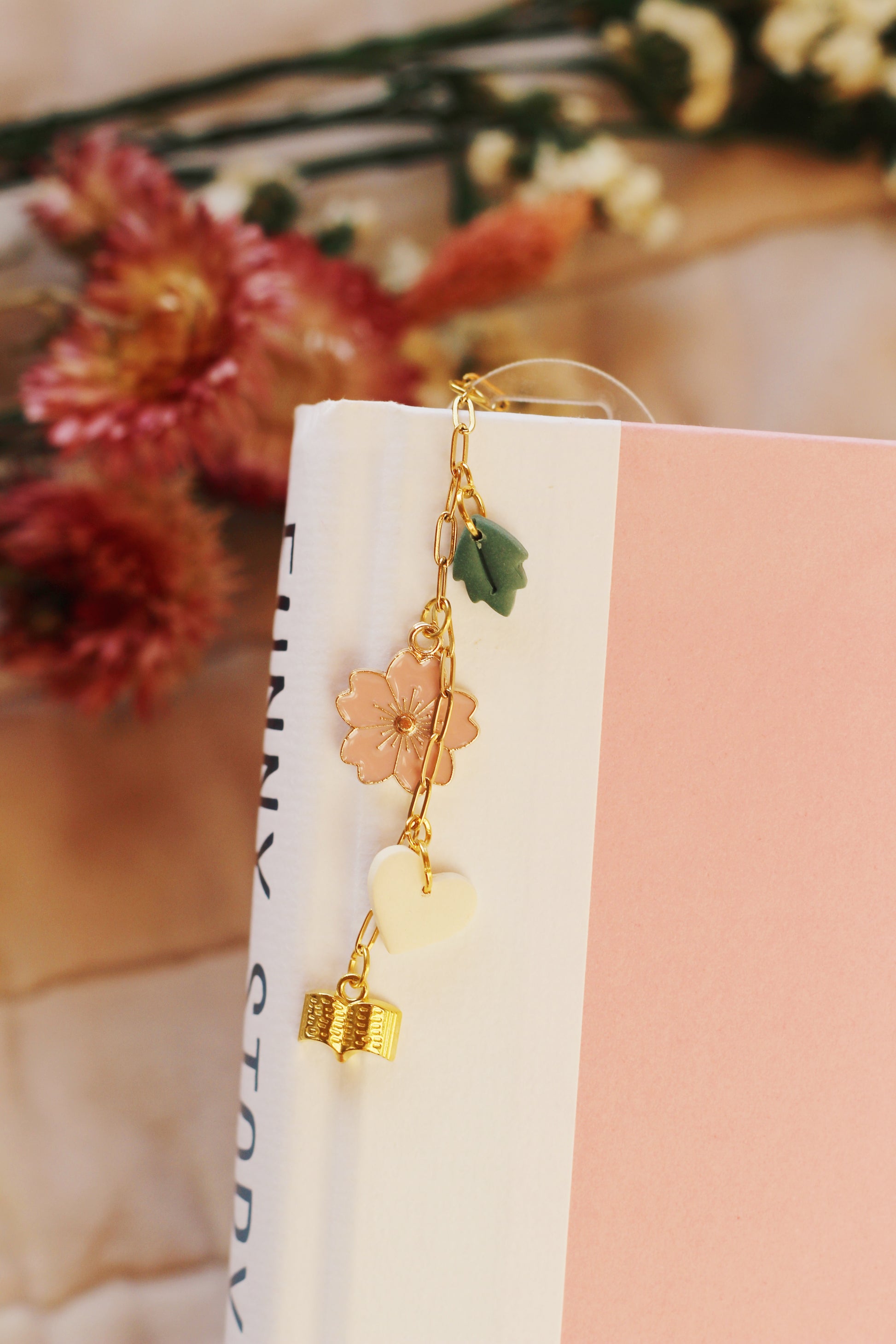 Acrylic bookmark with UV DTF design, clay and metal charms