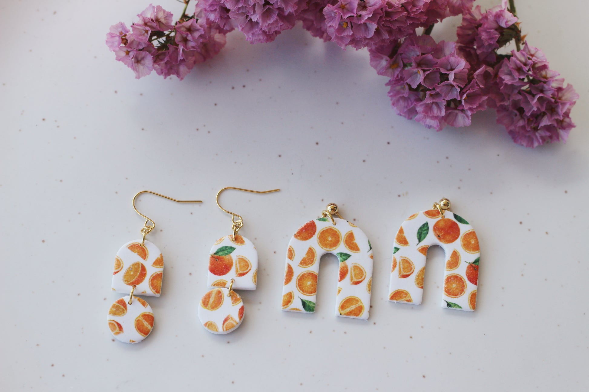 Polymer clay earrings made with 18k gold plated hardware. Lightweight, hypoallergenic, and nickel free.