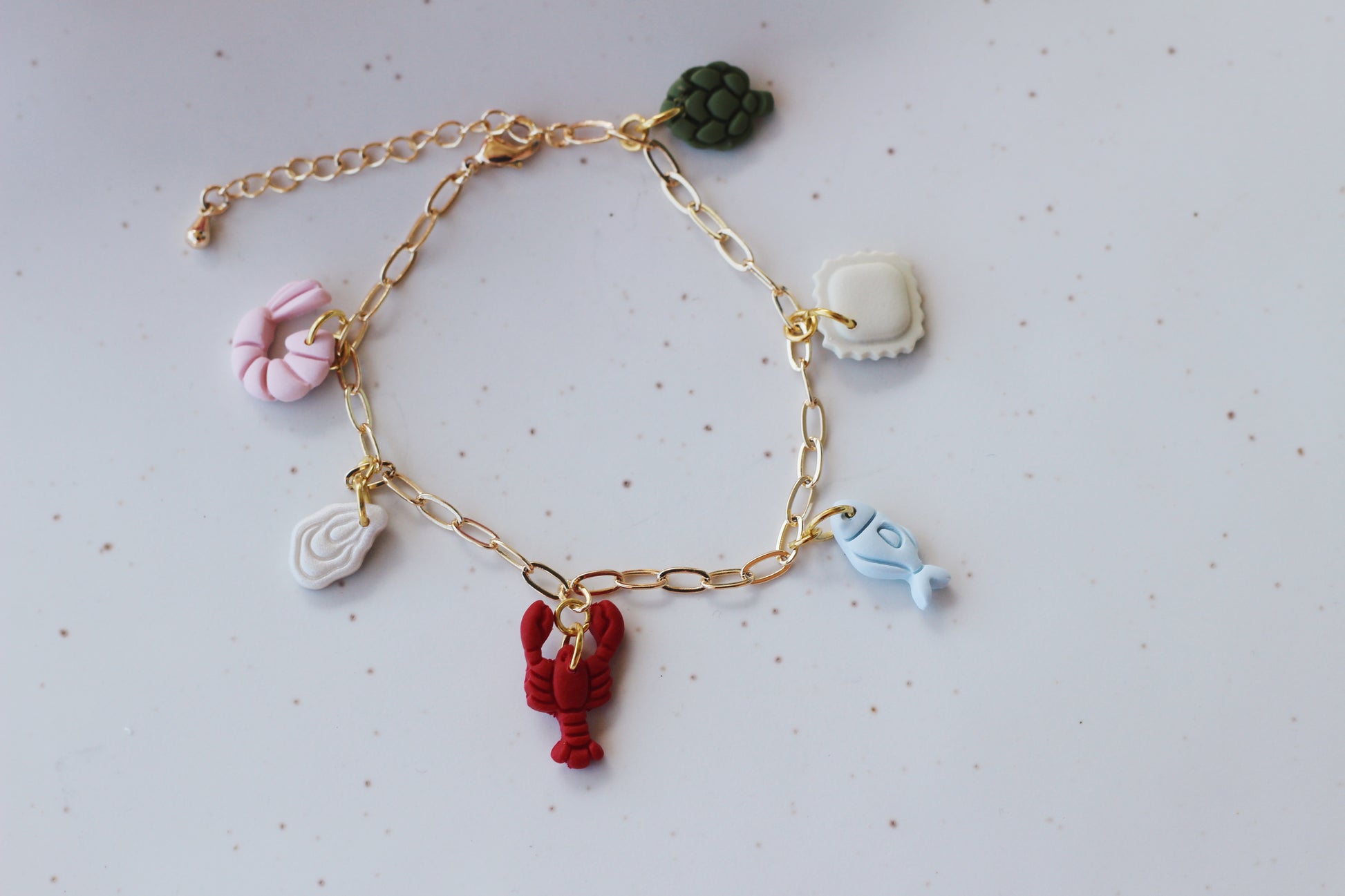 Each design comes with 3 magnets (either the lid design with 2 sardines or the filled tin with 2 sardines). I didn’t have time to photograph the pasta bracket so I posted the necklace image so you could see the charms.
