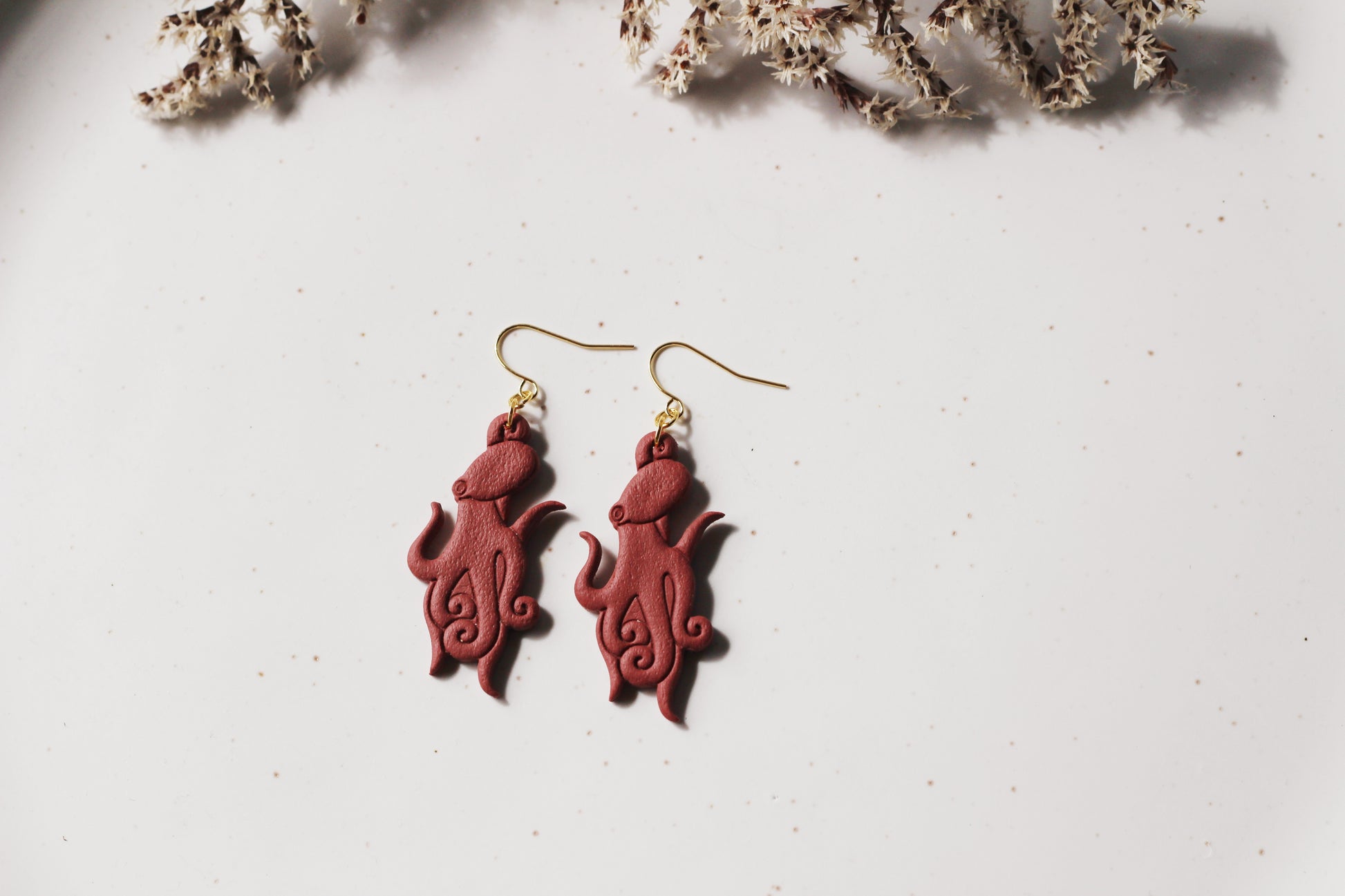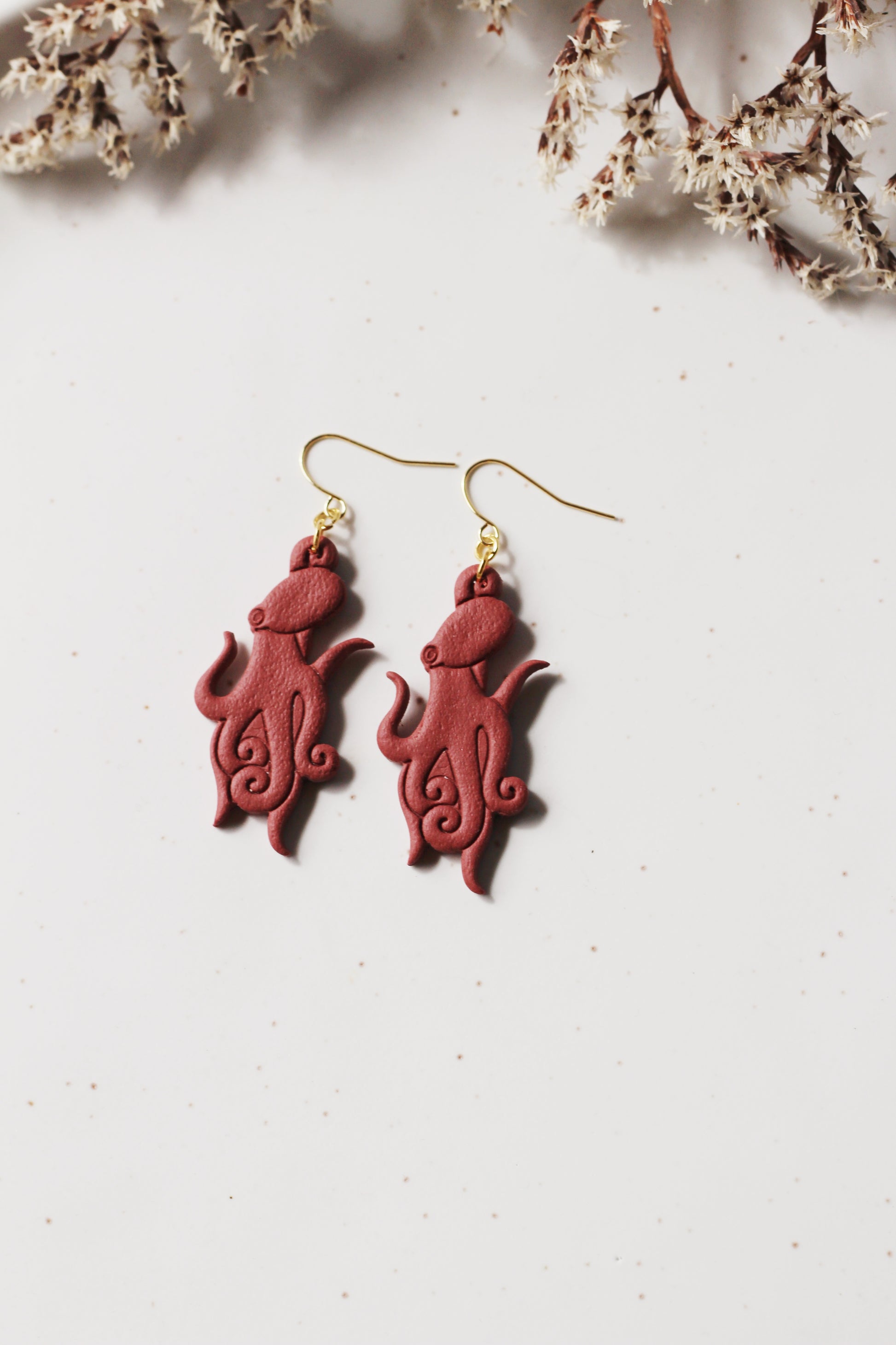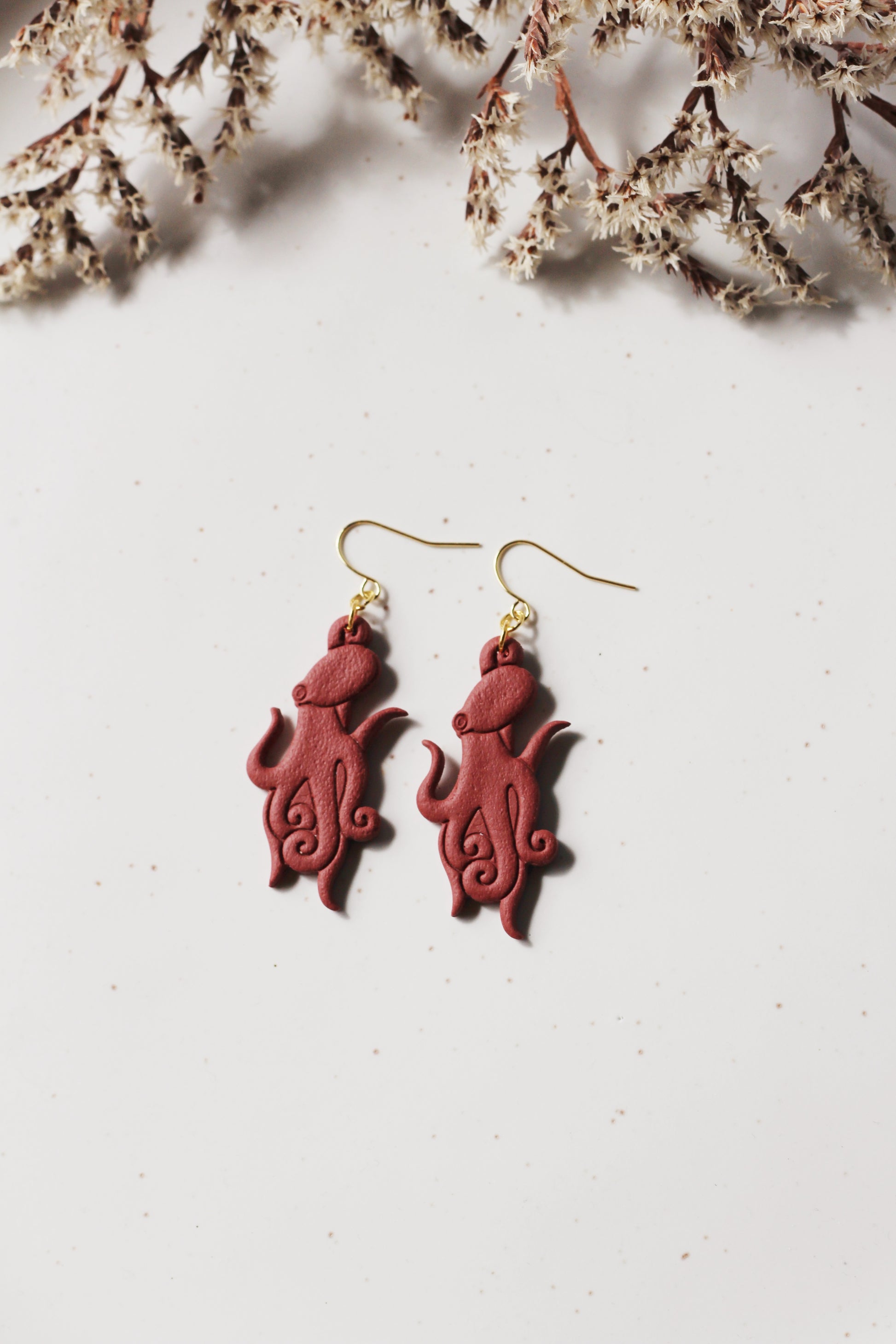 Polymer clay earrings made with 18k gold plated hardware. Lightweight, hypoallergenic, and nickel free.