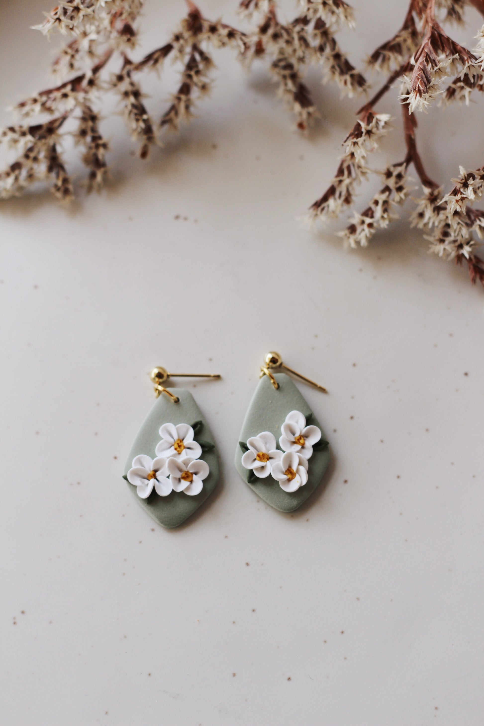 Polymer clay earrings made with 18k gold plated hardware. Lightweight, hypoallergenic, and nickel free.