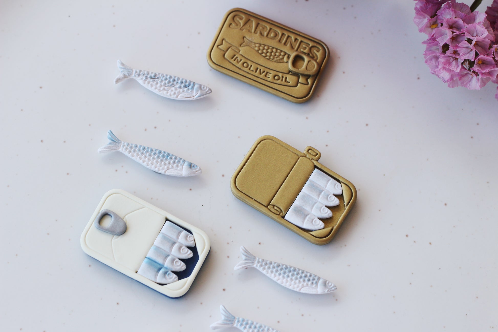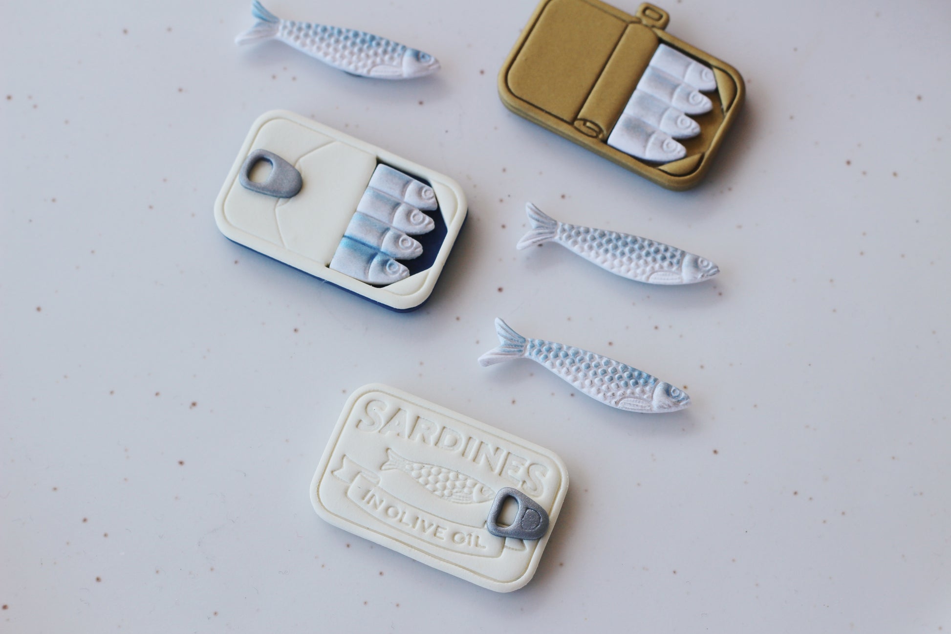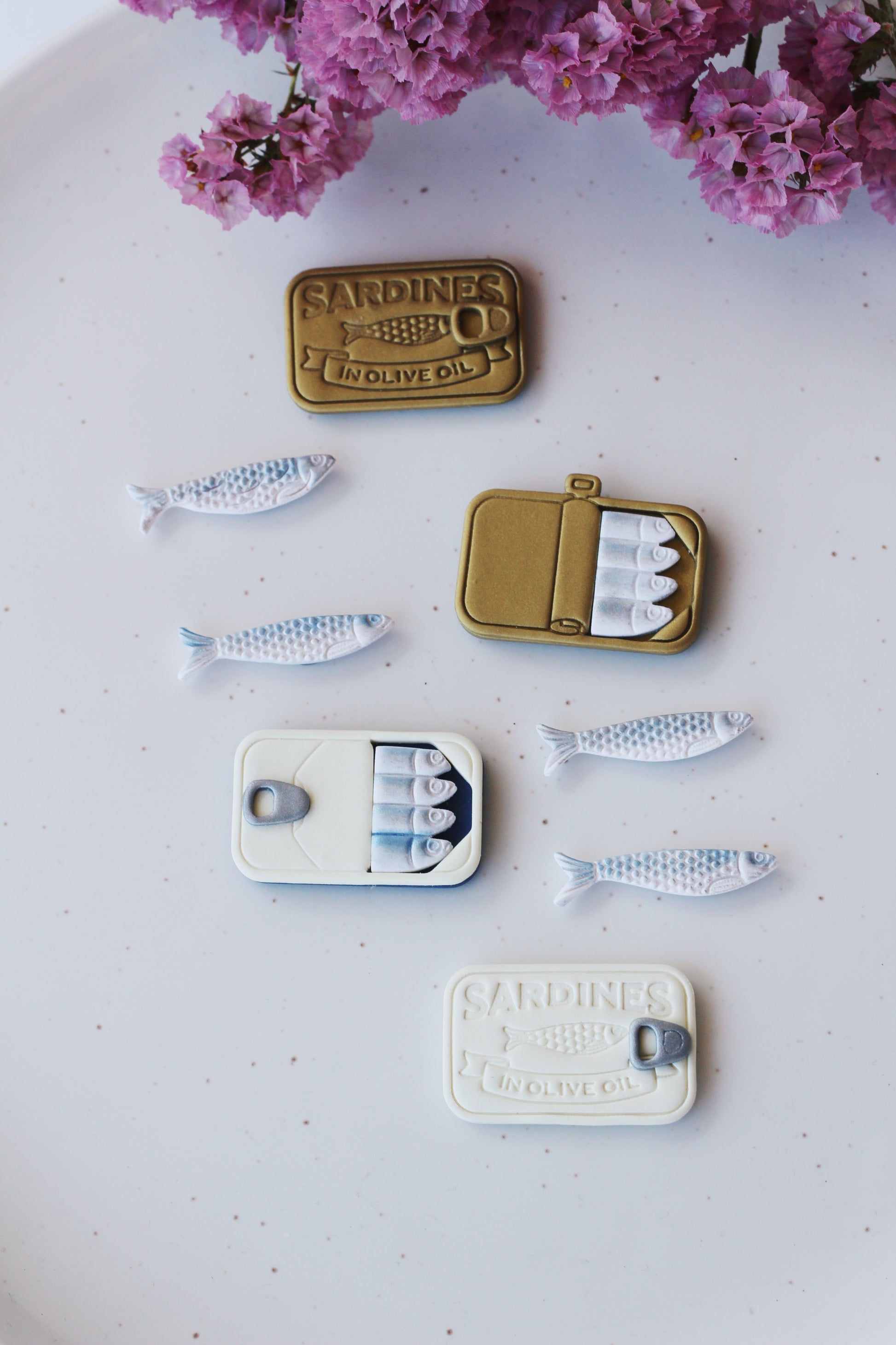 Each design comes with 3 magnets (either the lid design with 2 sardines or the filled tin with 2 sardines).
